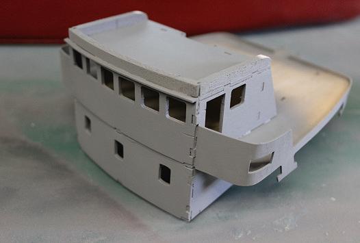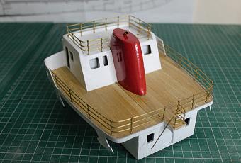 The basic structure of the bridge and funnel complete. Handrails are started to be fitted around the bridge wings and these add another layer of finesse.