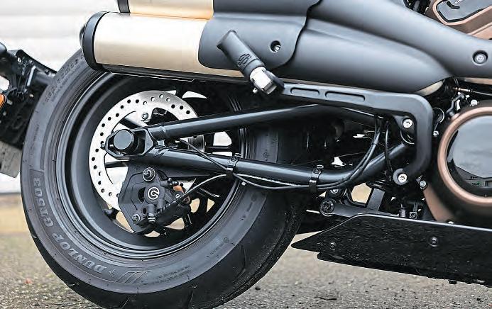 The frontsuspension consistsof some traditional telescopic forks, and at therearthere’s amonoshock unit. Together they keep themotorcycle well poised ontheroad.The17-inch spoked wheelsfit that all-important scramblerstyling, andthe110/70 frontand140/70 rear tyresdoa decentjob of sticking to theTarmac.