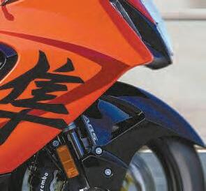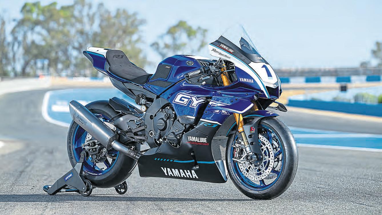 Yamaha’salsoofferinga fancyGYTRtrackversionof thenewR1,whichcomes withmorecircuit-focusedkit: nostands,anAkrapovicrace pipe,racebodywork,Brembo racebrakepads,keyless ignitionandmore.It’sFIM Superstock-compliantinterms of regsandis readytorace (thoughthe 100dBAkramight struggleonsomeUKtracks). Bothnewbikesareonsale now.Pricesweretbcwhenwe wenttopress,butthe old road R1wasaround £18,500and theR1GYTRfrom2023cost £26,500,sothatwillpresumably betheballpark.Moreinfo: www.yamaha-motor.eu