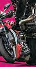 ThatmeansthebigMultidrops downautomaticallywhenyou cometo ahalt,tomakeiteasierto get afootdownforthestumpyof limb.Theworking-classstandard V4makesdowith non-electronic Marzocchiforksandshock,while thepremium Pikes Peak variant showsoffwith revisedgoldenÖhlins EC2.0semi-activesportsuspension. Thatmatchesthesingle-sided swingarmandforgedsuperbikesizedMarchesinirimsnicely.