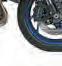 havegracedallitsperformancebikesin recent decadesinfavour of fancyBremboStylemafourpistonradialmountcalipers. Thesearepairedup with aBrembomastercylinder,320mmdiscsand braidedsteelhoses,toprovide amplestopping poweryou’dimagine.Bridgestoneissupplyingthe rubber:sweetRS11hoops thatwilldogreatwork ontrackand road, in classicsupersport120/70 front and180/55 rearsizes.