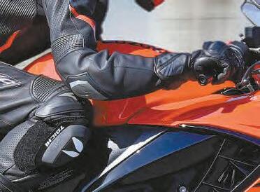Motorcycleairbagsarebecoming morewidespreadthanksto firmslikeAlpinestars, Dainese andIn&Motion,whichareall expandingtheirproductranges. Thisisthelatesthigh-enddesign fromAlpinestars,aimedat race/trackand roaduse,which features adualinflatorsystem so itcan energisetwicein abadorextendedcrash. Thegasgeneratorsare easily replaced, andtheairbagworks as astandaloneunit orintegratedinto asuitable Alpinestars suit/jacket.Itprotectstheback,chestand shoulders,withanextendedback protector paneltocoverthecoccyx.