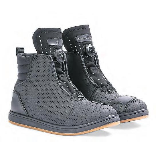 ACE-approvedriding bootin aslicktrainer style,the Tachiboot features anaturalgum soleandperforated syntheticupperwith silver3M reflective fabricand awaterproof membrane.There’s fullCEprotection,and extracomfortfroma ballisticnylonpadded collar.Concealedlace loopsandpull-onheel tabmakethemeasy to geton,andthereare smoothheelandshifter overlays.