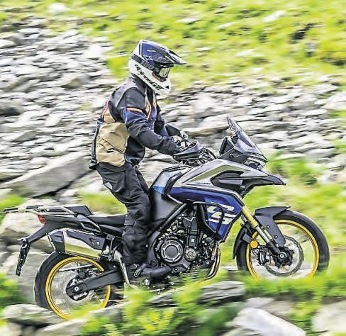 IntypicalCCMstyle,the Tracker’spoweredbya punchyold-schoolsinglecylindermotor (thoughit isliquid-cooled).It’struly agloriousthing;rawand rough-edgedbutsuper-rewardingtoride.It’sonlya 600cc,withwhat readslike arelativelymeagre55bhp and40.5lb-ftoftorquetoplaywith. Butin practice, thelightweight145kgbeastfeelsrabidand readyfor action.Itsoundsglorious,too.
