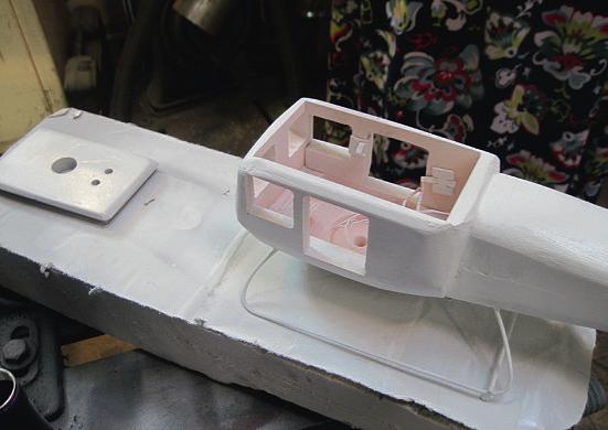 In photo1 youcan seehow I built it up in pieces.The pieces of foam areglued together with Superglue. Thebodyismade from fivepiecesand alid.The tail is made from twopieces. Youcan seethatI cutout four windowsand twodoor holes. Thesewerecut on themilling machine. Youcan seewhat youare doingwhenyou useit becausethe mill hasX andY