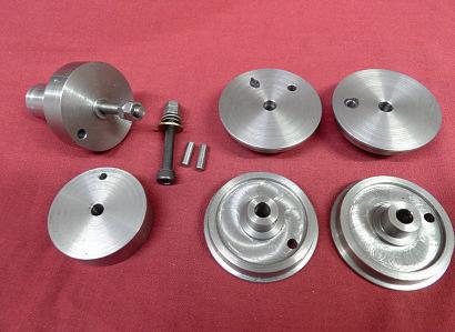 Fitonthe mandreland clamp down. rill andreama 3mm hole throughata position whichisinsidethe minimum designed flangeand tread diameter as canbeseeninthe photograph andonintothe flangeofthe mandrel. This must be left blind.