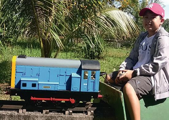 Thefinallocomotiveinthe stable is a5 inch gaugebattery poweredengine, Charlatan, broughtoverhereasa kit from Blackgates when we first arrived. This engine has been named Sivakorn whichis theformalgiven name of our Thai grandson andcarries the