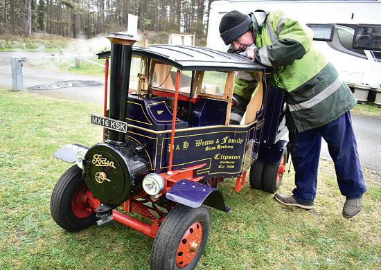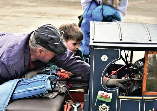 PaulPaviershowing this youngvisitor theworkingsofhis steamlorry.