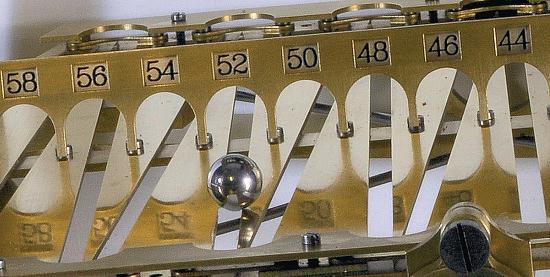 Thetilting andunlocking of thetable is dependenton thesteel ball consistently traversing thetable from left to rightand back againand operatingthe tablerelease levers as it does so.The movement playsnopartin drivingthe ball; theballrelies solely on theangle of thetable andgravity forits impetus.