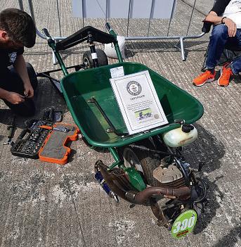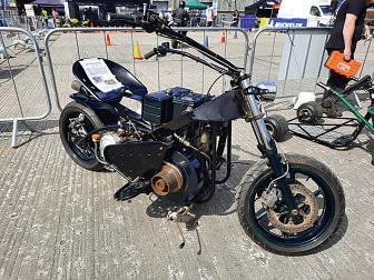 First is the World’sFastest Wheelbarrow,which achieved over 58mph at Elvington, ‘piloted’byDylan Phillips. Next is the ‘Lister/Honda’a diesel-powered motorbike. Rumour has it that powerisdeliveredatthe rate of approximately onestrokeper 100 yards… Youcan see theskills arena behind, wherewesaw alot of extreme kneescraping as riderscirculated among the cones.