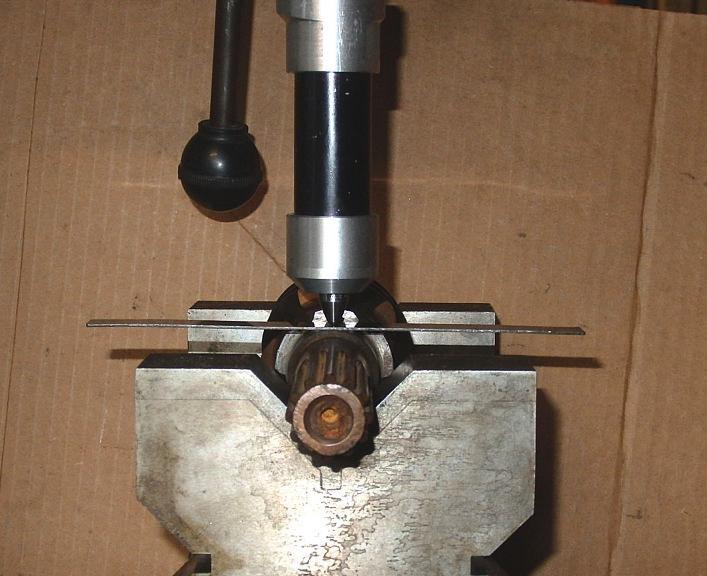 Ibought alow pricediamondone from Ama on in and madeone from car ide ,a mm diameter mm long pieceofcarbide stuck in afreecutting mild steel (FCMS)bracket, ground with adiamondwheel see fig. thatworked well Ofcoursethe length is the same as the diamond one to ensure getting the sameloadfrom the spring. See photo 8 showingthe indenters used includingthe dummy one used forload calibration, fig. Thereisared point on the diamond indenter, this is to showone diagonal direction, this couldbe of someuse when alarge part is to be setunder themicroscope and if youwantone diagonaltobehorizontal on the screen.