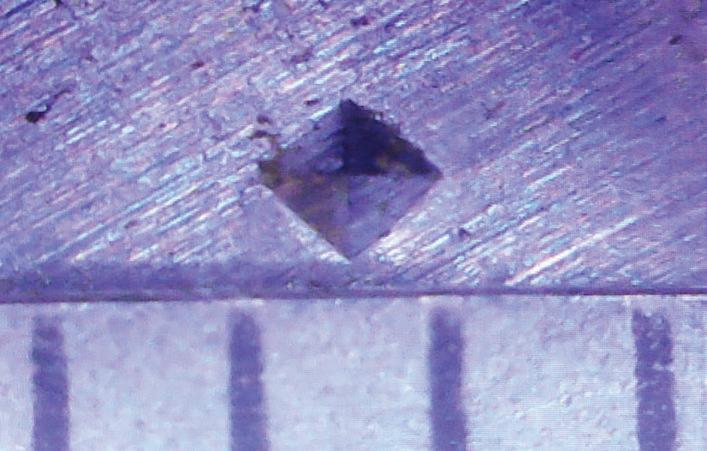 Indent viewedthrough the microscope.Measurement ofthisimage givesthe diagonal size.