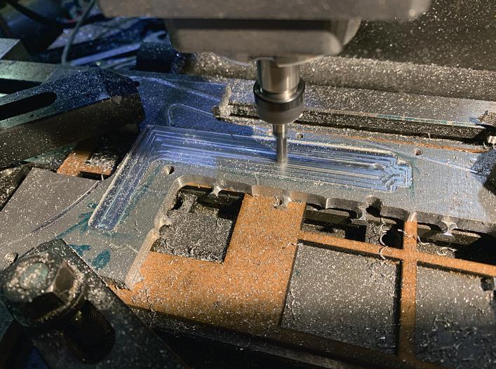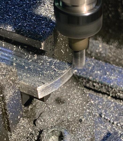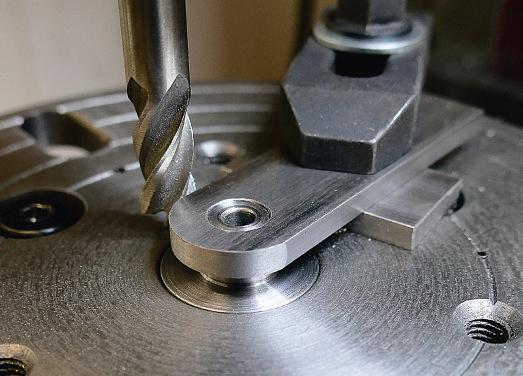 This wasmilled out using CNC but could equally easily been machined on arotarytable or even fled by hand. The arcofthe curveiscentred on the oppositecorner of the rectangular