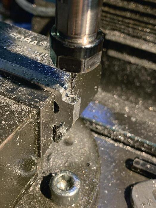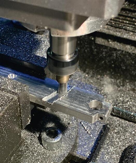 Slots hacked out and holes machined forthe tworods. The 3Dprinted conceptpiecein theforeground.