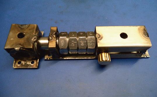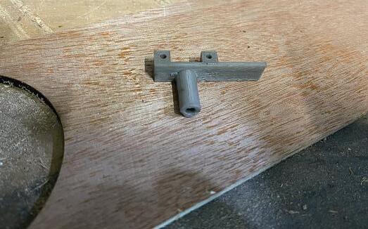 This component, ,incorporates the mount forthe switch and the shafand its holder as well as apin to connect to the vertical support. A printed version wasinitially created to understand what the fnal steel version needed to look like