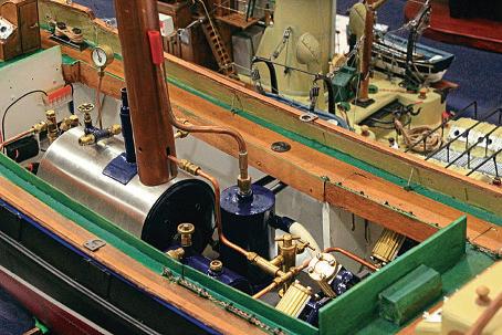 Twolovely steam launches on the Phoenix club stand. Open launch models are always popular as the engine can be seen running when the boat is operating. With closed models such as tugs, only the vapour escaping from the funnel is an indication of what is going on inside the boat.