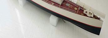 Fairlight, afne example of a1960s’ Thames Luxury Cabin Cruiser built by Paul South of Hanwell &District Model Society from the Fairacre II plan by Philip Conolly,which is still listed by Sarik Hobbies in its ‘X List’ section.
