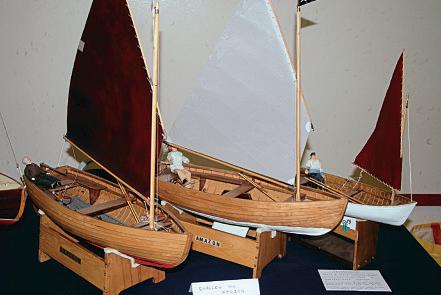 Swallow,Amazon and Titmouse, acollection of dinghies inspired by Arthur Ransome’sclassic adventure books, on the Springbok Model Boat Club display