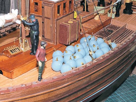 Therewas still, however,one issue to be addressed… My belief is that all model boatsonthe water should have acrew, or ahelmsman at very least, so I contacted Martin at Model Dockyardfor suggestions. After some investigation he advised that avessel of this type would have acrewofeight or nine, plus adeckhand. This gave me lots of scope and allowed me to inject some humour into one particular cameo; as you will see in Photo 31, which depicts crew