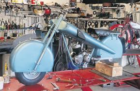 In thedocuments that came with the bike was an article from an old The Classic MotorCycle headed ‘Whereisthe unique Walker Bullpup?’, and featured a1930s pictureofthe original owner and builder,Mr Walker,and his wife sitting on the bike. The article was placed by Mr Walker’s nephew