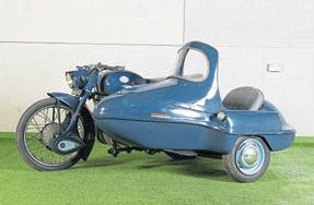one of EddieKidd’sstunt bikes ;a1950MotoGuzzi Superalceand aBianchi 318cc MT61 both in militaryspecand a1964 GreevesEssex attachedto alightweight Watsonian Bambini child’ssidecar Whoeverwinsthe glorious1930 ‘cammy’ AJS350ccR7willbea lucky manorwoman. Unfortunately, the history is unknownand it’s unregistered, indicating that thiswas purely arace bike(andone of thelast producedbyAJS). Te estimate of £12,000-18,000 is pretty much on the