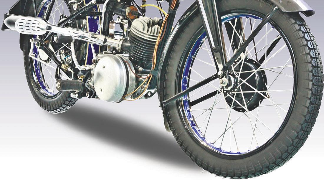 Iconic Auctioneers’ Spring Shuttleworth Sale will be avariety of modernand classicmachines, butprobablythe mostunusual lot is an electric bike. Youmight think that’s not uncommon –after all, electric motorcycles areeverywhere these days.But this is an electric motorcyclefrom1942…