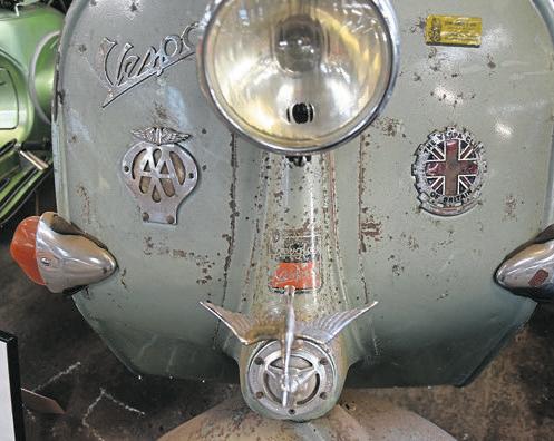 Left: Proper patina on this Douglas Vespa. Early Vespas werealmost entirely built in Britain by Douglas Foundry with manyofthe parts being made in Britain and the Veteran Vespa Club had put on adisplay with an example of every Douglas Vespa model.