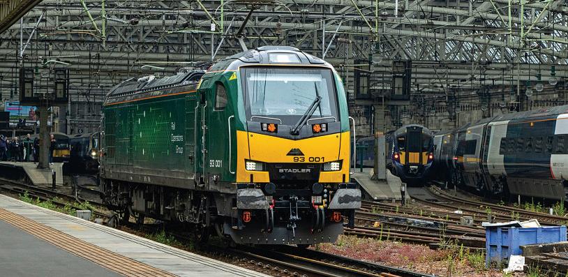worked an identical diagramwith No. 93001. The doyenofthe fleet wassent out on atour of the country on June 9, initiallyworking to Glasgow Central as a0Q07 06.16 from Worksop,then back to Carlisle to layover. On June 10, it worked a 0Q72 08.53 down to Wembleybefore breaking newground forthe type twodayslater with a0Q26/0Q27 out and back run along the southern half of the ECML as farasDoncaster.On June 13 it ranback to Worksop under a0Q17 under a0Q26 headcode, while No. 93007 headed south-west as a0Q17 to Long Marston forthe Rail Live 2025 Event