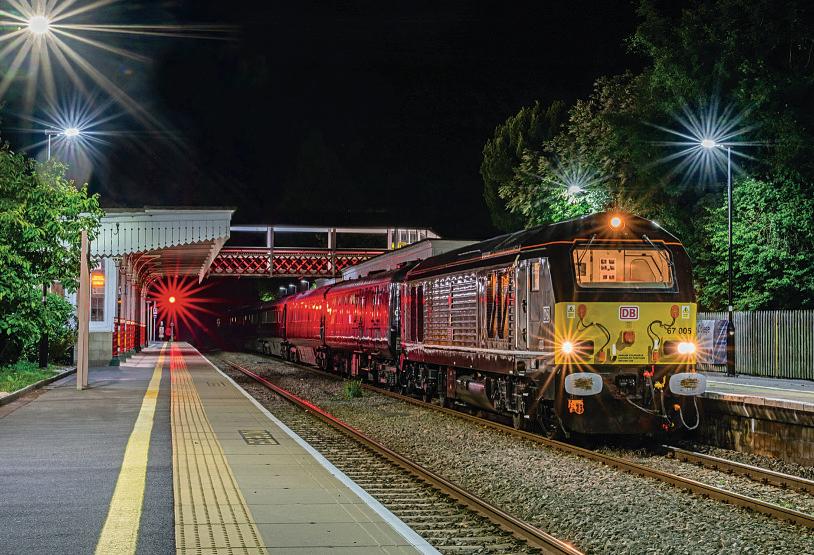 The contract to operate and maintain the nine-carriagetrain is held by DB Cargobut expires at the end of March2027, and the decommissioning process wi ll aim forthat date. Recently, Class 67 No. 67005 wasrepainted and named King’s Messenger