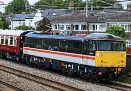 Formainlinetesting,No. 66313 Lucie wasassigned to No.99001 to drag it around untilthe pair were cleared formovement under theirown power, the pair being partneredwithfive Mk.2 coaches hired from Eastern Rail Services. This commenced on June 23 with a5Q30 11.49 to Crewe and a5Q31 15.46 return to Leicester