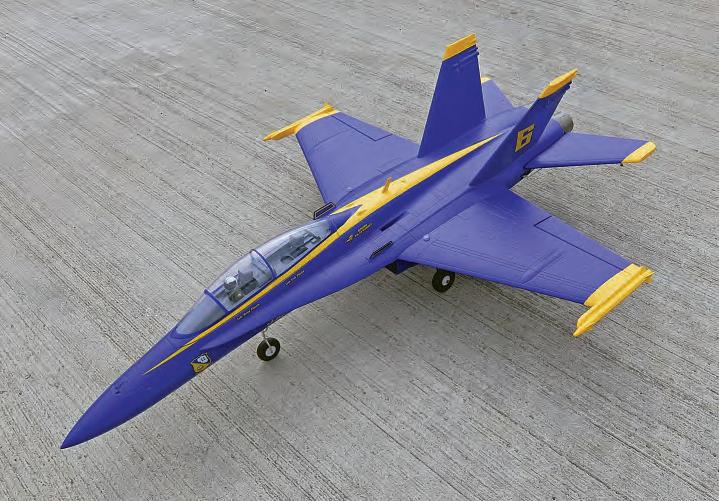 When Iwas o�feredthe Fly-ModelFHornet to review Ihad to decidebetweentwo attractive colourschemes.Thechoiceiseithera BlueAngelsstylelivery in navybluewithyellow wingtips,stabiliser tips andfintipsorthegrey ‘Hawks’scheme of aUSNavycarrierjet.Either wouldhave been welcome by me but it was suggestedthatin-�lightphotographymight be atad easierif we went fortheBlueAngels version. Havingbeenparty to theeditor’s