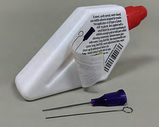 PhotoEtchGlue25mlAD93 enableseasy andaccurate application of metaletchparts. It is water based,iseasilyspread, nonbrittle andfor bondingall types of photoetchtoplastic andmetal.