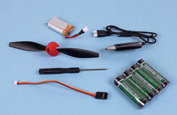 According to CML’s promotional literature, ‘XFly’s new Spitfres are supplied with a4-blade propeller,an accuratecanopyoutline,pilot fgure, exhaust stacks,cannons and outward retractable electric landing gear.The large batteryhatch can accommodate a4S2600 -4000 mAh4SLiPo.