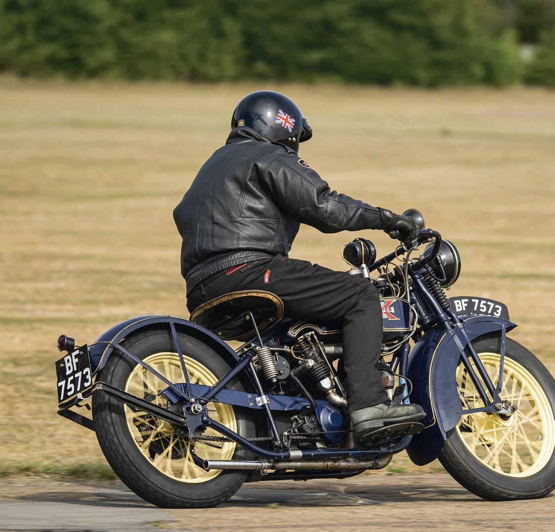 I’ve been fortunate to ride several other Early Americans recently,but never yetan Excelsior of anyvintage,sobeinginvited by Alan Dale to sample his 1928 Super Xbearing engine no.L5346 on the wide openspaces of the Bicester Airfeld test course flled thatgap.The bike is undeniablyhandsome look ing,and though the recipient of an