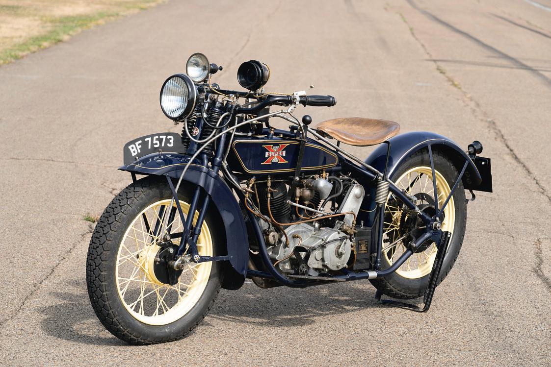 Chief Engineer at the Harley-Davidson MotorCompany, and drew up plans fora mid-sized V-Twin to competeagainst the hugely successful Indian Scout. But when he presentedthe unauthorised projec twhich he’d createdofhis ownbat to co-founder Walter Davidson, he wasreprimanded for wasting the company’stime on theprojec t! Constantine thereforeresigned from Harley-Davidson, and ofered both his ser vices and his projec ttoExcelsior.S chwinn immediately accepted both,leadingtothe Excelsior Super Xstar ting produc tion in 1925, efec tively thus replacingExcelsior ’s current mainstream model,the 1000cc X-Twin, which wasdiscontinued during the frst year of Super Xproduc tion.The smallerbike wasviewed as amoresuitable companion model to thecompany ’s Henderson Fours,and fur thermoreprovedin its frst year to be competitiveinall formsof competition –but especially hill- climbs and oval track racing –against bigger-engined rivals.I ndeed,Excelsior aceJoe Petrali set anew record of 107.71mph fora measured mile on aSuper X, the frsttimeasmaller displacementbike had broken the ‘ton’. Theair-cooled Super Xunit construction dr ysump 45º V-twin motor retaining the X-Twin’s IOE valvegear measured 76.20 x81.76mm foracapacit yof746cc. The three -speed hand- change gearboxwas boltedtothe back of theengine’sver tically split aluminiumcrankcases,with aquieter