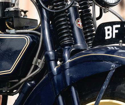 ‘M ilitar y’ olivegreen wasadopted as the Excelsior liver ythatyear,denoting the fac t thatthe frmfurnished motorcycles to the American Army during WorldWar 1, with soldiers nick naming them ‘BigX’owing to the large letter Xemblazoned on the fuel tank. This would remain the only colour option until 1920, when Navy Blue with fne gold pinstriping became the company’s