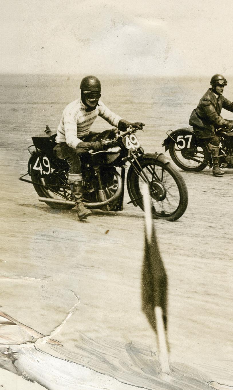 Howe ve r, Do ds on didn’t have it all h is ow nw ay ,n ot to st ar tw ith an yw ay ,t ho ugh by the end of th erace –w hic ht oo k1 h 40 minut es –h ew as three la ps ahe ad of the ru nner-up,w ho wa sa ct uall yt he ma n frontl eft in ou rp hot og ra ph,num be r 49 JHSGardner on hi s4 90c cNor to n CS 1. Th is is aWal te rMoo re -des ig ne d exam ple,amac hine so on to be re pl ace d in the ra ng ebyt he Ar thur Ca rroll ve rsi on , whic hw as to go on to dominat eroa d ra cin gt hrou gho ut the 1930s.Ind eed ,by 1930 th eNor to nw orks tea mw erea lrea dy ca mp ai gn in gs uc h, ea si ly identifi ab le wi th the ma gn et oc ha in cove rb ein go n the ri ght, as opp os ed to le ft on mo de ls lik eGardner ’s.T he ex haus tp ip eo nt he ri ghto fGardner ’s ma ch ine is ab it of an anomal y, as the yw ereg en era l ly on the left.T he ev entw ri te -up als orev ea ls he ha da n‘au xi li ar yp et ro lt ank ’w hic hmus t be the boxm ou nt ed on the ma ch ine’s re ar. Al as,i ts pr un gal ea k.