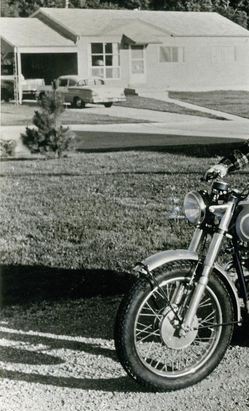 This all-American scenewas includedinthe July 6, 1961 issue of Te MotorCycle,alongside a letter, titledCan’t Stick’em,written by the manonthe motorcycle, Rick Willey, from St Louis,Missouri. He wrote: