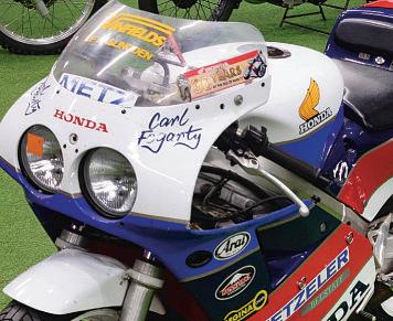 Tis selection assembledby Dale Winfeld, is stunning, with, amongits highlights,two exCarl FogartyHondaRC30 racers, aSteve McQueenScottand sidecar, an Eddie Kidd Yamaha stuntbike, variousVincents,a super-rare AJSS3(the Moto Guzzi-esq500cc V-twin), a beautiful Sunbeam95R,MV 750S and lots of cammyNortons and Ajays, amongothers.