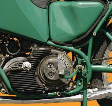 Te one on this machine would have been fnishedbrightred,contrastingnicelywith the polishedmudguards,forkshrouds etc, making for an eye-catchingmachine.