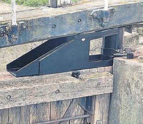 Accessing thesiteistricky, so the charity’steambrought in acrane boat to liftthe balance beam –theheavy beamthat formsthe topof thelock gate –tocarry out the repair,savingtheneed for