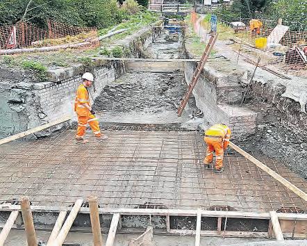 To dothis each canal wascovered withlong prefabricated concrete tubeslaidinto the waterwhichwerethen earth-filledoverthe toptotakethe road across.These‘tubes’ subsequentlybecame knownasthe Galton Tunnelonthenewline andthe Summit Tunnel on theoldline.