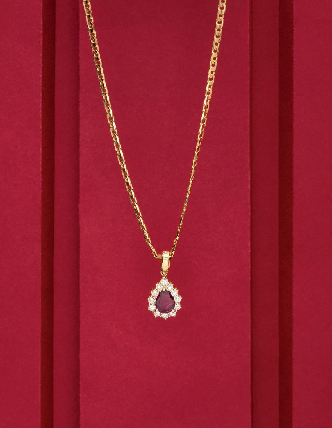 1• GARGANTILLA Y PENDIENTE CON RUBÍES EN ORO AMARILLO DE 14K