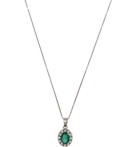 5• COLLAR Y PENDIENTE CON ESMERALDA EN ORO BLANCO DE 14K