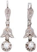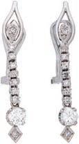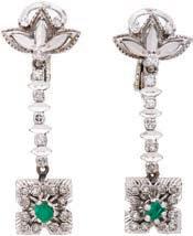 6• PAR DE BROQUELES CON ESMERALDAS Y DIAMANTES EN ORO BLANCO DE 14K