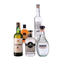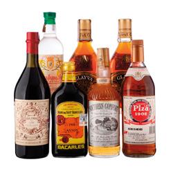 h) Miniaturas de Whisky, Armagnac, Cognac, Drambuie, Tequila, Ginebra, Jerez, Oporto, Contreau, Creme de Casis, Vodka, Ron, Anis, Campari, Brandi, Grand Marnier, Angostura Bitter.