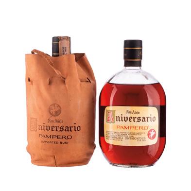 Ron Añejo Aniversario Pampero Venezuela. En bolsa de cuero. Piezas: 2.