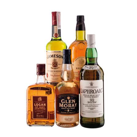 c) Jameson, 12 años, Old Irish Whisky. d) The Balvenie, 10 años, Single Malt. Escocia.
