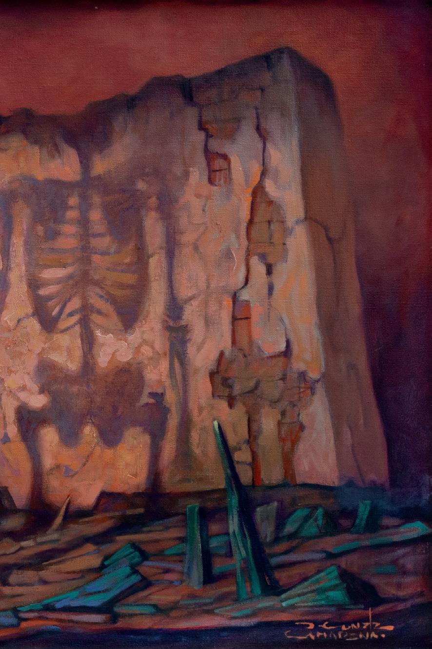 Agradecemos a la Fundación Ricardo Martínez de Hoyos A.C. por la verificación de autenticidad de esta obra, marzo de 2025. Esta obra será registrada en el catálogo razonado del Dr. Mark Ruben con núm. RM-51005. Publicado en: CASTILLO, Erick et al. Ricardo Martínez. México. Editorial RM, 2012, pág. 113. Con etiqueta de Galería de Arte Mexicano. Presenta mínimos detalles de conservación. Ricardo Martínez es considerado como uno de los exponentes más sólidos de la riqueza cultural mexicana. Fue un artista que logró articular en su obra una maestría técnica y una profunda imaginería plástica, que ha sido ampliamente reconocida por el gremio a nivel internacional. Su formación artística no fue producto de estudios académicos, ya que era renuente a cumplir con los sistemas institucionales, así que optó por ser autodidacta y abrevar en la obra de los grandes artistas ya consagrados. A pesar de haber viajado a Europa y estudiado la obra de los viejos y modernos maestros, Ricardo Martínez nunca se sustrajo de la influencia de la llamada Escuela Mexicana de Pintura, realizando cuadros con narrativas nacionales. Además de la pintura de caballete, creó diseños para escenarios para ballet e ilustró libros de Alfonso Reyes y Juan Rulfo. Dentro de la modernidad de su pintura, siempre siguió siendo un clásico, un artista protagonista de su tiempo que comunicó un lenguaje universal. Fuentes consultadas: BONIFAZ NUÑO, Rubén. Ricardo Martínez. México, Fondo Editorial Panorama, 1994, pp. 5 y 35 y LARA ELIZONDO, Lupina. Visión de México y sus artistas. Tomo I. México. Promoción de Arte Mexicano, 2000, pp. 254-255.