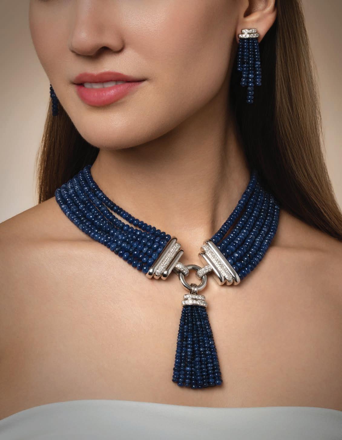 11• CHURUMBELA CON ZAFIROS Y DIAMANTES EN ORO BLANCO DE 18K
